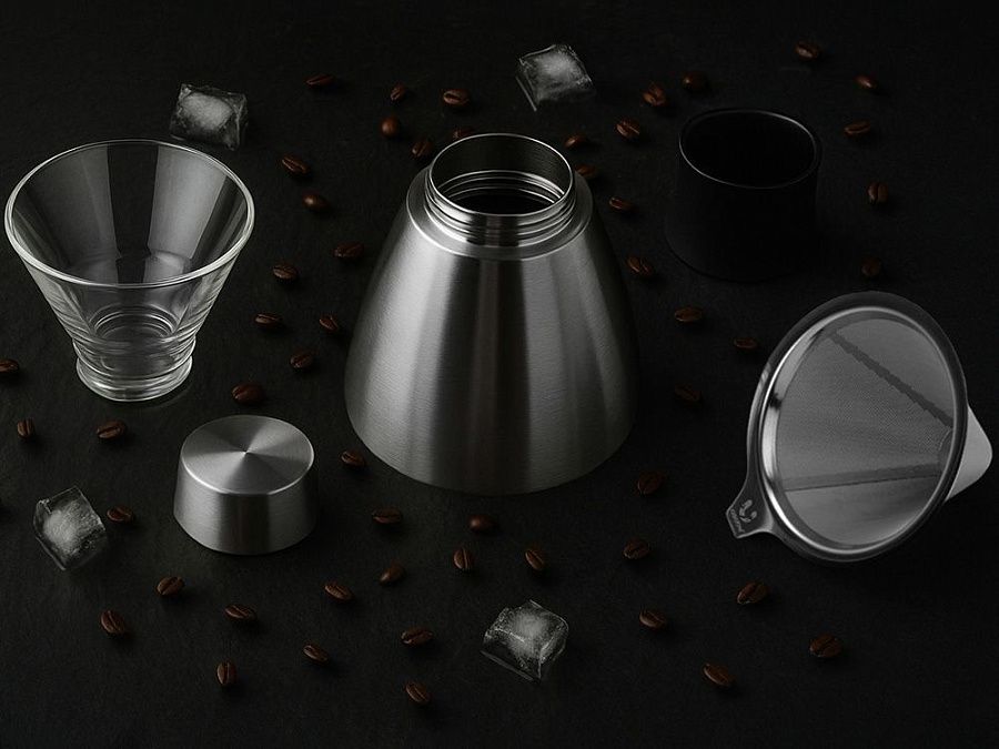 Кофеварка состоит из емкости, куда попадает приготовленный кофе, уже упомянутого сетчатого фильтра из нержавеющей стали, и воронки из термостойкого боросиликатного стекла, в которую фильтр вставляется. Конструкция кофеварки полностью разборная, ее легко мыть, сушить и разбирать.