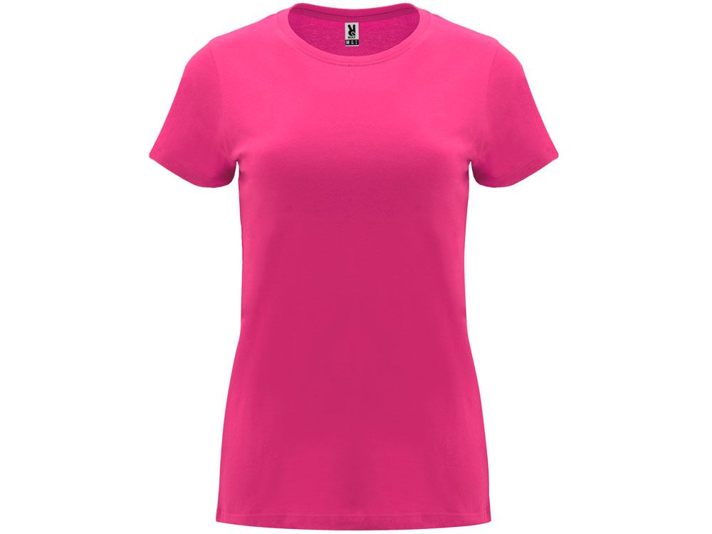 Женская приталенная футболка. Круглый вырез горловины обработан рибом 1х1. Шов горловины укреплен тесьмой.