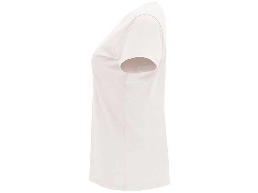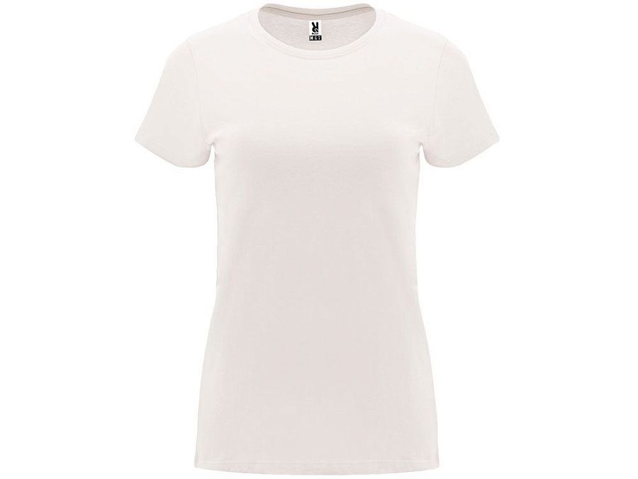 Женская приталенная футболка. Круглый вырез горловины обработан рибом 1х1. Шов горловины укреплен тесьмой.