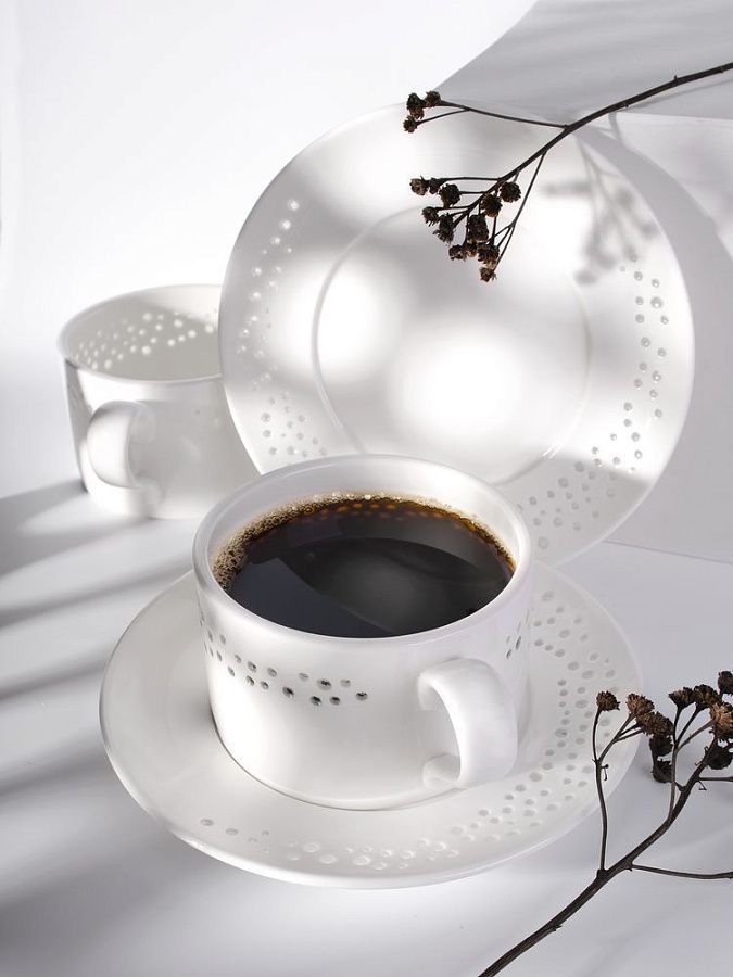 Чайные пары Coralli — легкая, словно светящаяся изнутри посуда с легендарным узором «рисовое зерно». Благодаря тонкому слою прозрачной глазури кружка выглядит кружевной и ажурной, при этом напиток гарантированно остается внутри.