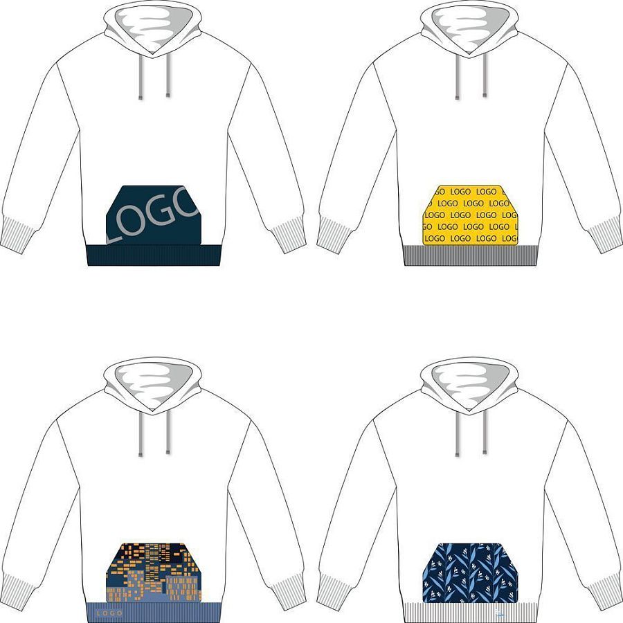 Карман-кенгуру с вывязанным логотипом или индивидуальным рисунком в фирменной цветовой гамме.