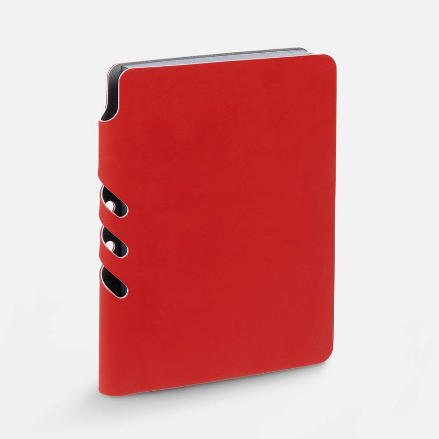 Ежедневник с гибкой обложкой выполнен из материала Soft Touch Ultra, красный РР и серого Latte (внутренняя часть обложки).