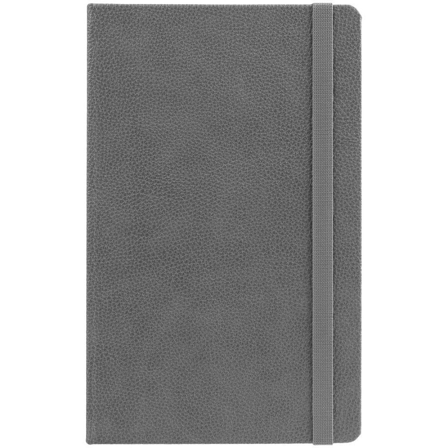 Ежедневник с твердой обложкой, выполнен из материала LaFite, серый СС, дополнен резинкой и ляссе в цвет обложки.