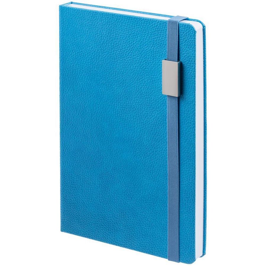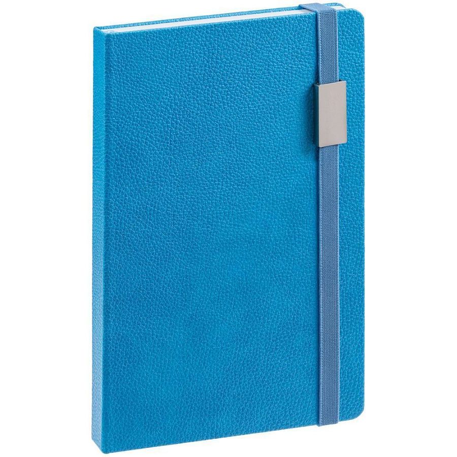 Зауженный ежедневник с прямоугольным металлическим шильдом на резинке.