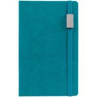 Ежедневник с твердой обложкой, выполнен из материала LaFite, цвет морской волны II, дополнен резинкой с металлическим прямоугольным шильдом и ляссе в цвет обложки.