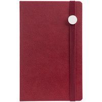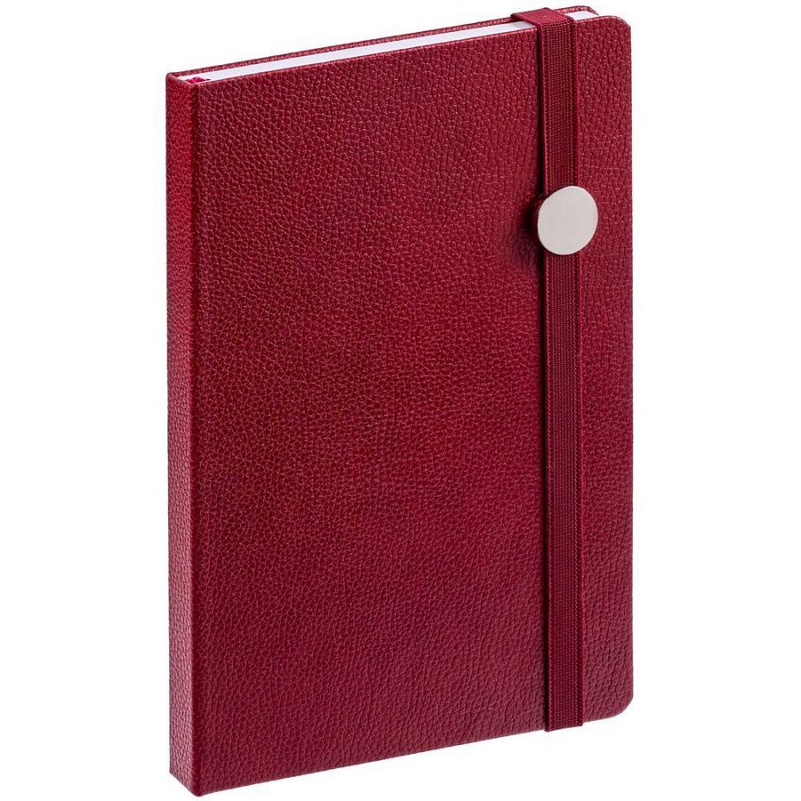 Ежедневник с твердой обложкой, выполнен из материала LaFite, красный РР, дополнен резинкой с металлическим круглым шильдом и ляссе в цвет обложки.