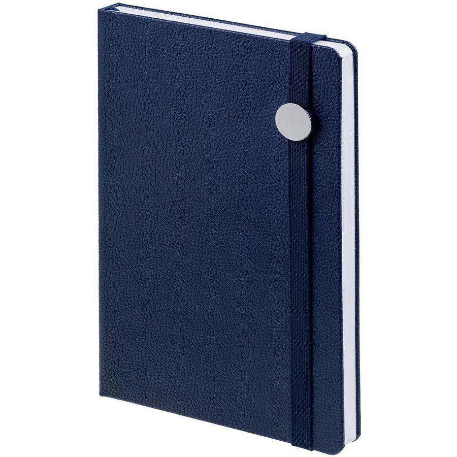 Ежедневник с твердой обложкой, выполнен из материала LaFite, темно-синий ХХ,дополнен резинкой с металлическим круглым шильдом и ляссе в цвет обложки.