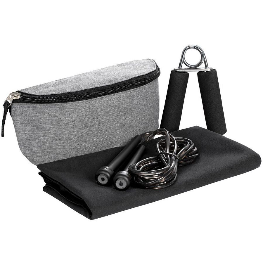 Fitness Jet — самый компактный набор для тренировок на свежем воздухе: в поясную сумку легко помещаются полотенце, скакалка и эспандер.
