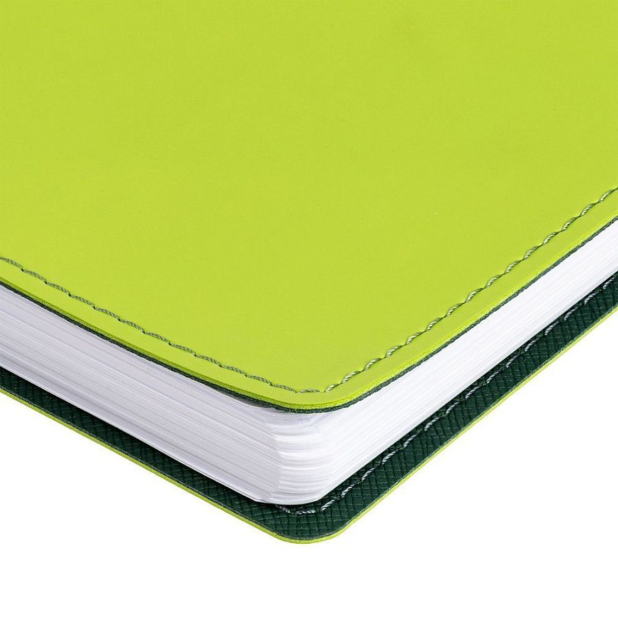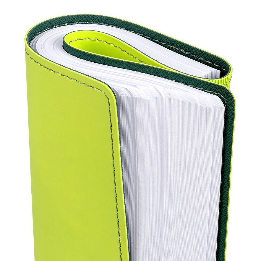 Ежедневник с гибкой обложкой, выполнен из материалов Soft Touch, светло-зеленый YY и Nice Touch, зеленый FF.