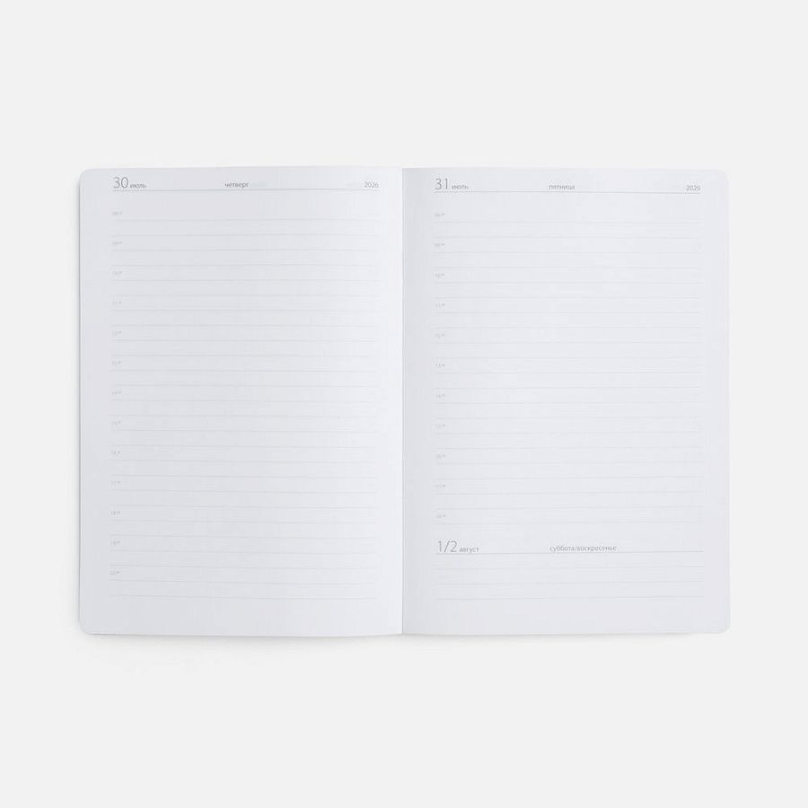 Ежедневник с твердой обложкой выполнен из материала Nice Touch, черный АА, и дополнен резинкой шириной 1 см и ляссе черного цвета.