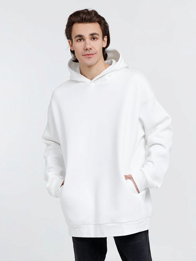 Худи унисекс One Size со спущенным плечом и карманами в боковых швах.