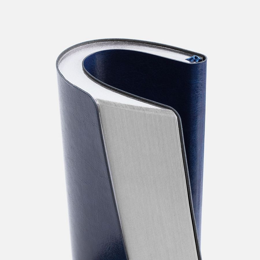 Ежедневник с гибкой обложкой, выполнен из материала Nebraska, синий HH, дополнен ляссе темно-синего цвета.