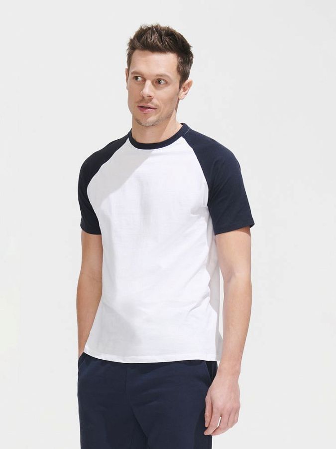 Футболка мужская двухцветная Funky 150, белая с темно-синим под нанесение