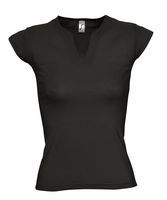 Женская кроенная футболка с оригинальным V-образным вырезом.