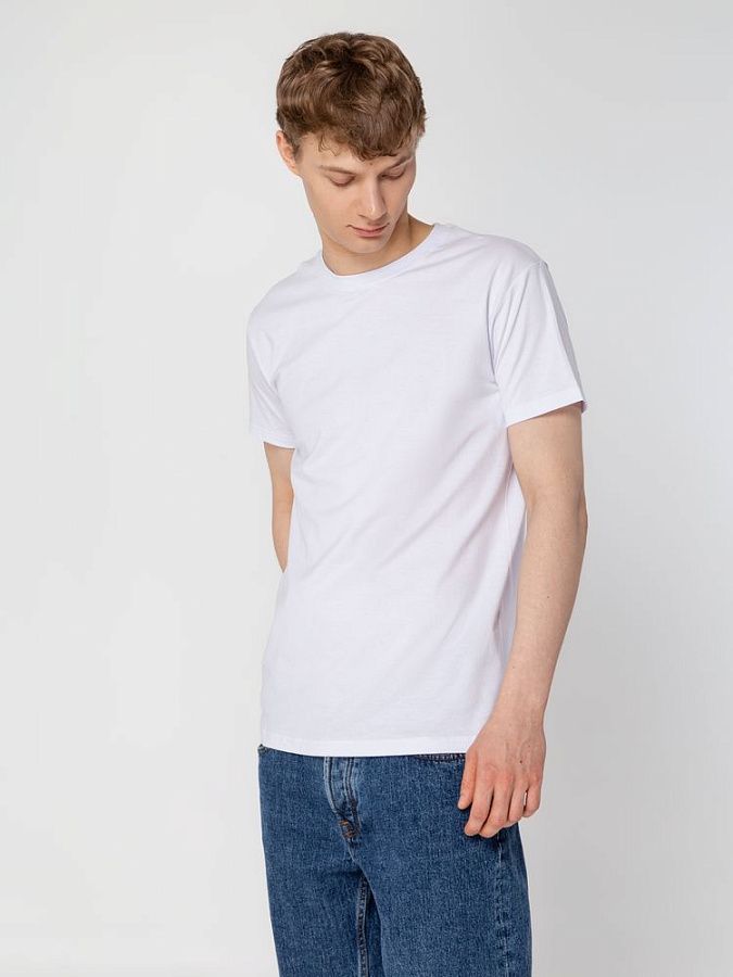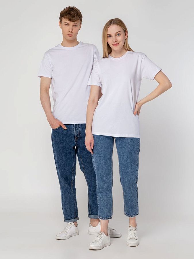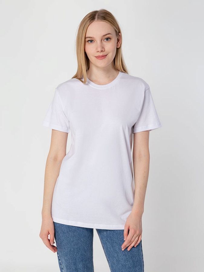 Базовая футболка унисекс прямого силуэта без боковых швов (размеры XS–4XL) или с боковыми швами (размеры 5XL–6XL).