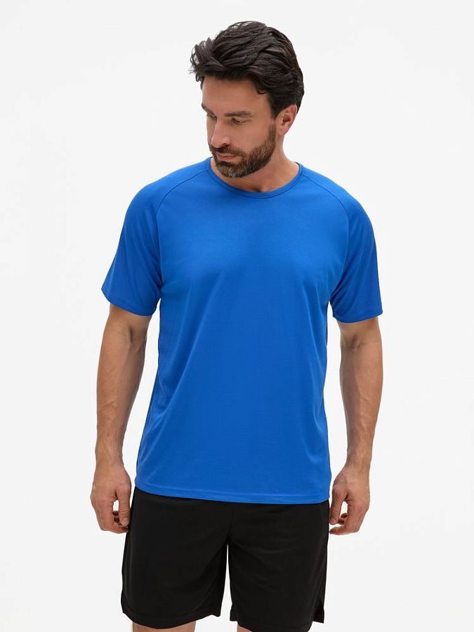 Футболка из спортивной сетки с рукавом реглан. Низ изделия и низ рукавов с двойной отстрочкой.