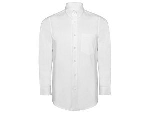 Рубашка приталенного кроя с воротником на одной пуговице. Планка на 7 пуговиц в тон, манжеты на 2 пуговицах, вытачки спереди и на спинке.