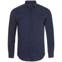 Модная рубашка с печатным рисунком в горошек, которая прекрасно впишется в современный корпоративный стиль.Облегающая модель с маленьким классическим воротничком, планкой с 7 пуговицами тон в тон и манжетами на 1 пуговице с разрезом «капуцин».