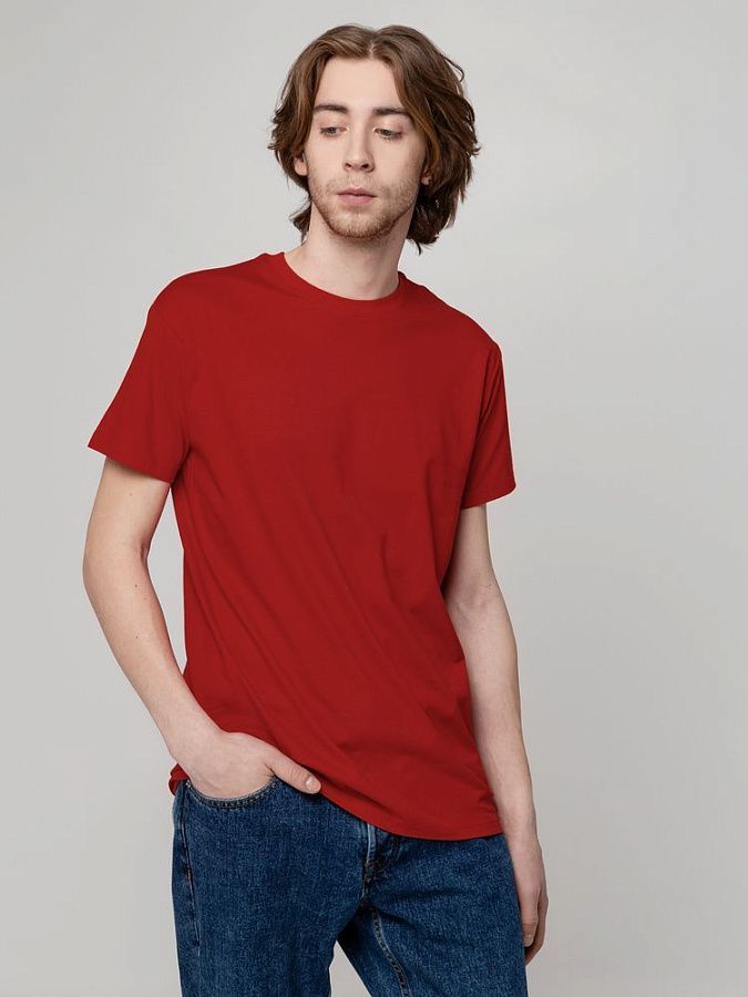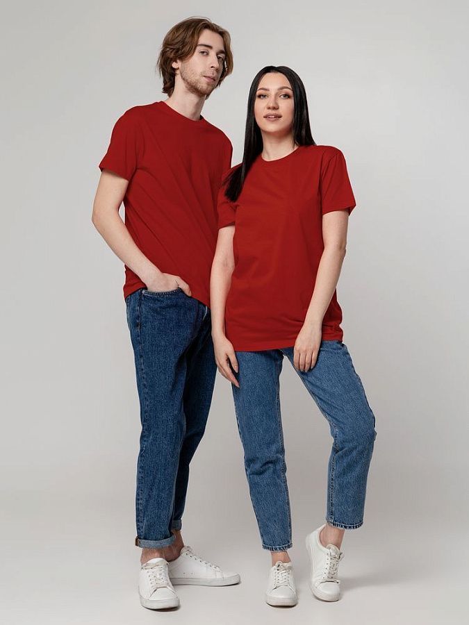 Базовая футболка унисекс прямого силуэта без боковых швов (размеры XS–4XL) или с боковыми швами (размеры 5XL–6XL).