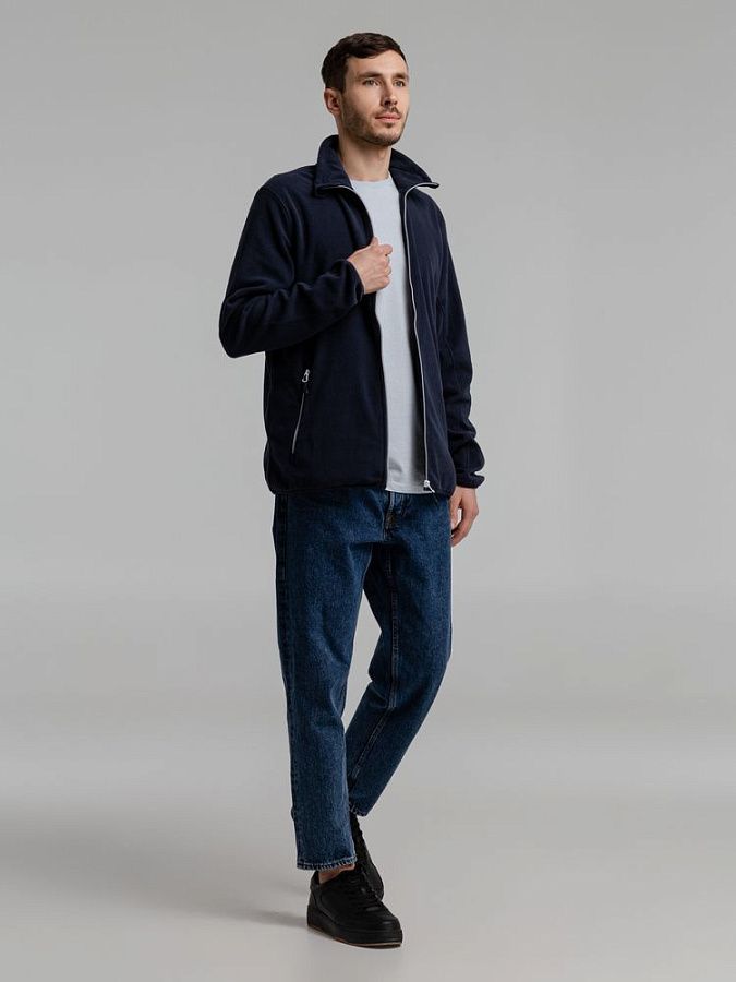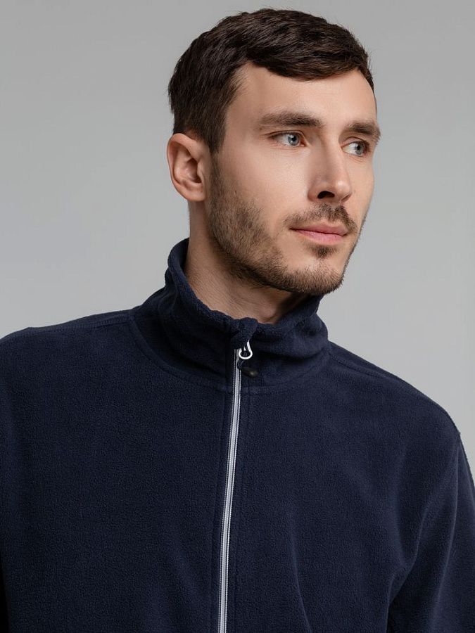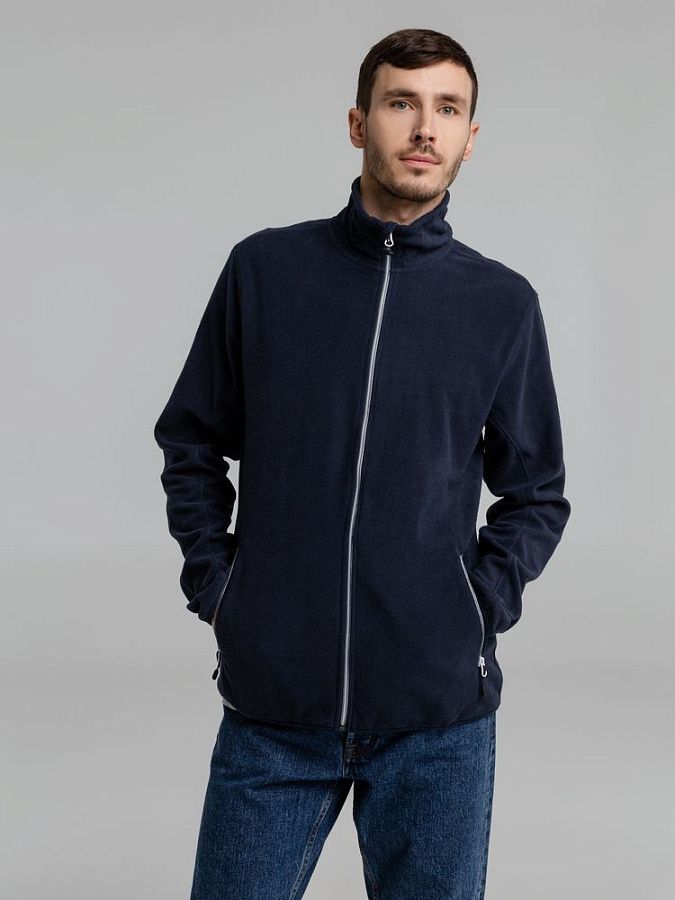 Толстовка из микрофлиса. Передние карманы на молнии, манжеты и низ куртки на тонкой резинке, застежка-молния контрастного цвета.