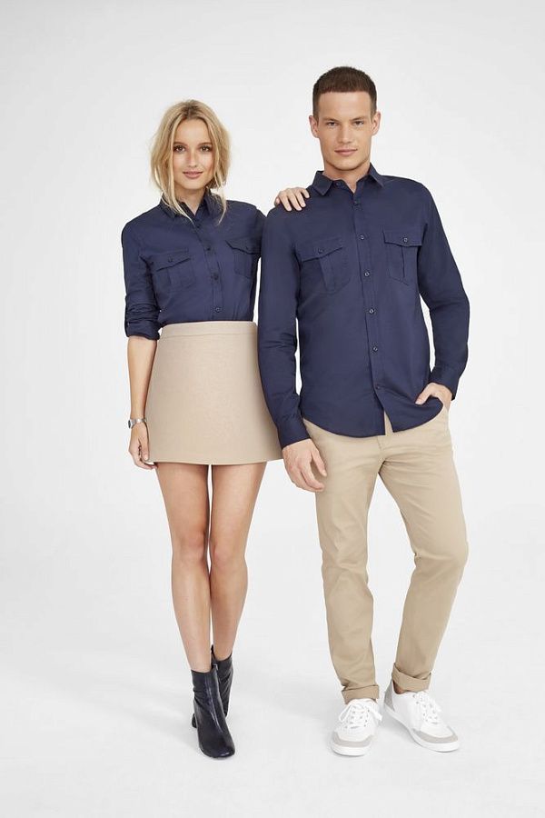 Рубашка приталенного кроя в стиле «сафари» с планкой на 7 пуговиц в тон.