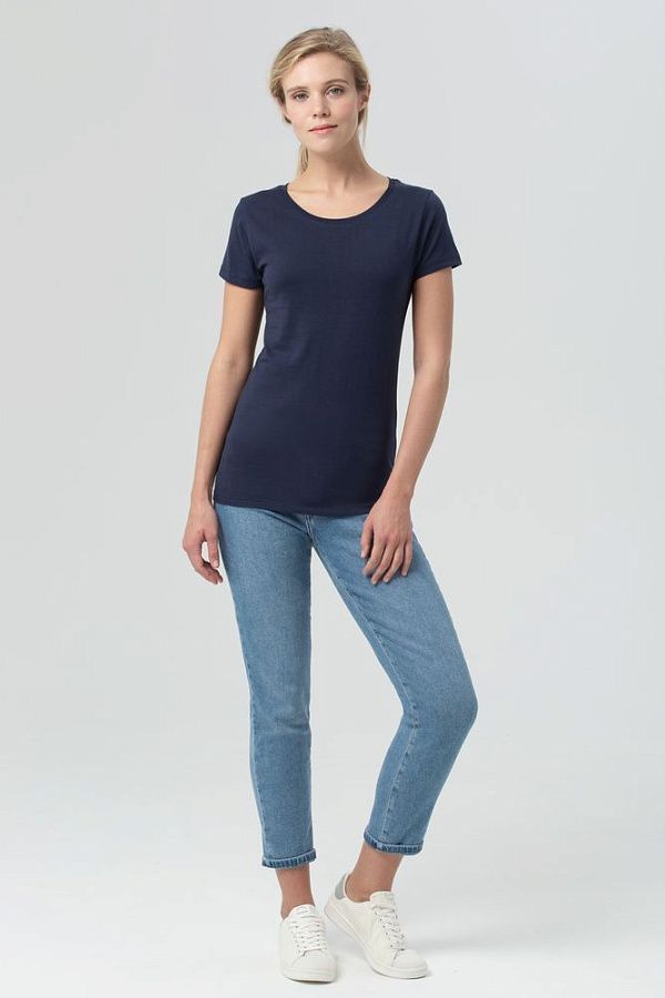 Футболка женская Rainbow Women, темно-синяя с ярко-синим под нанесение