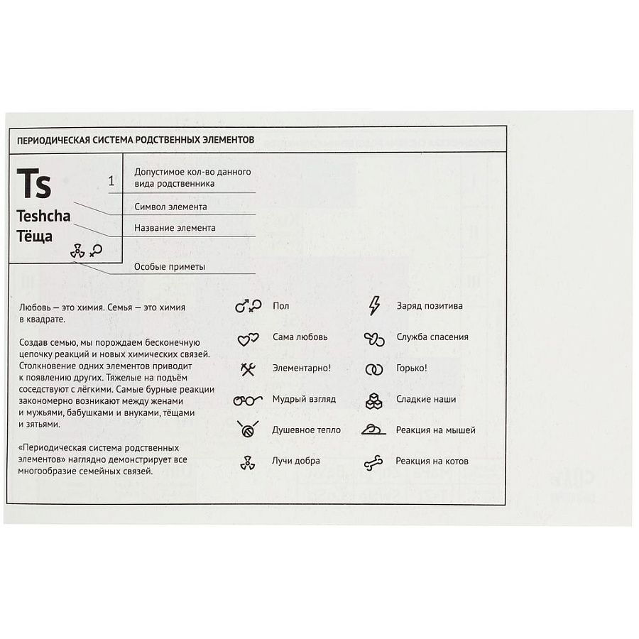 «Периодическая система родственных элементов» наглядно демонстрирует все многообразие семейных связей.Модель без боковых швов, стиль классический, унисекс.