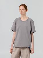 Футболка унисекс свободного кроя со спущенным плечом и смещенными плечевыми и боковыми швами.