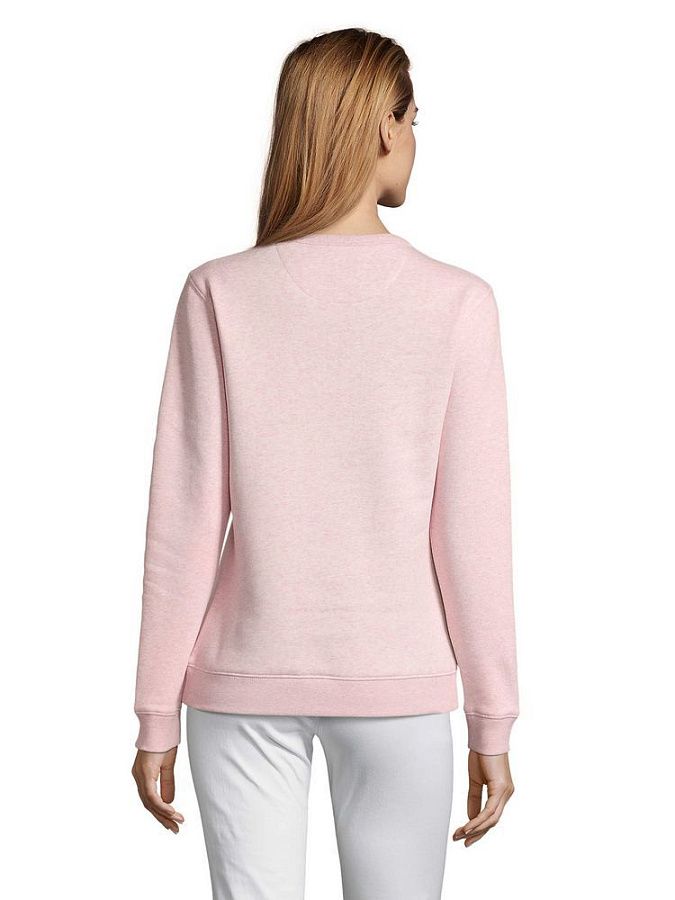Женская утепленная толстовка с круглым вырезом и декоративной треугольной вставкой. Лейбл производителя в боковом шве изнутри, в шве горловины — только бирка с размером, что позволяет вам нанести свой логотип.