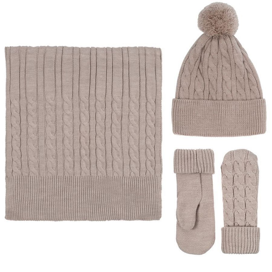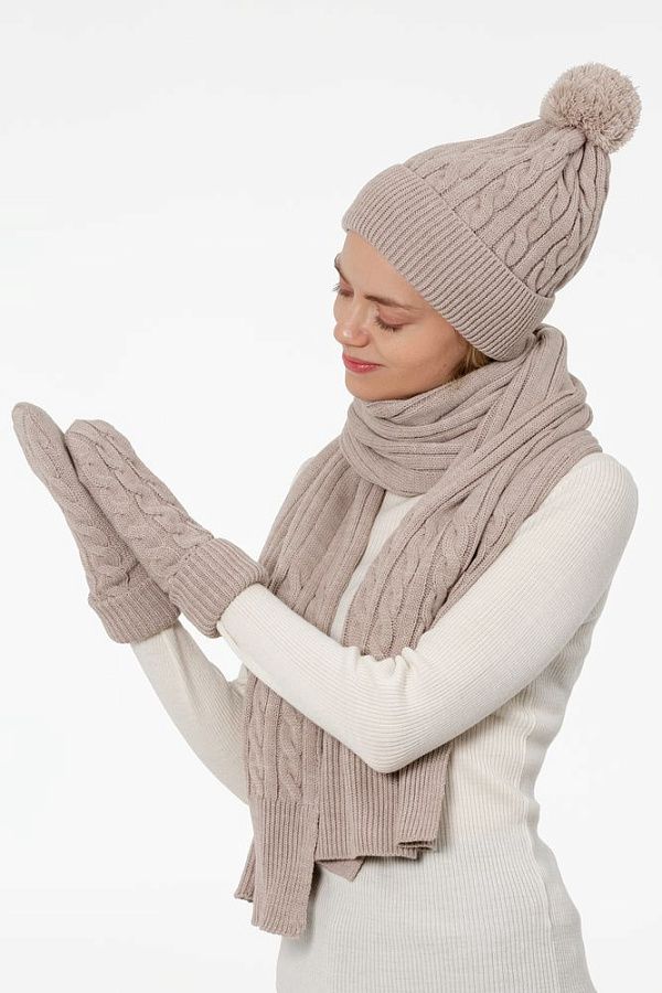 Варежки фактурной вязки с манжетой и подкладом из флиса.