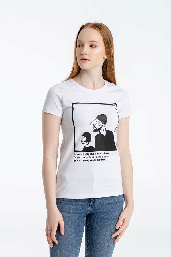 Дизайн принта: Яков Коган.Приталенная женская футболка стретч высокого качества.