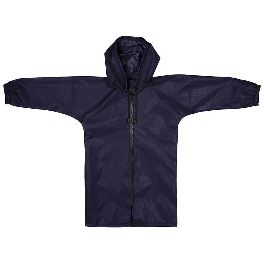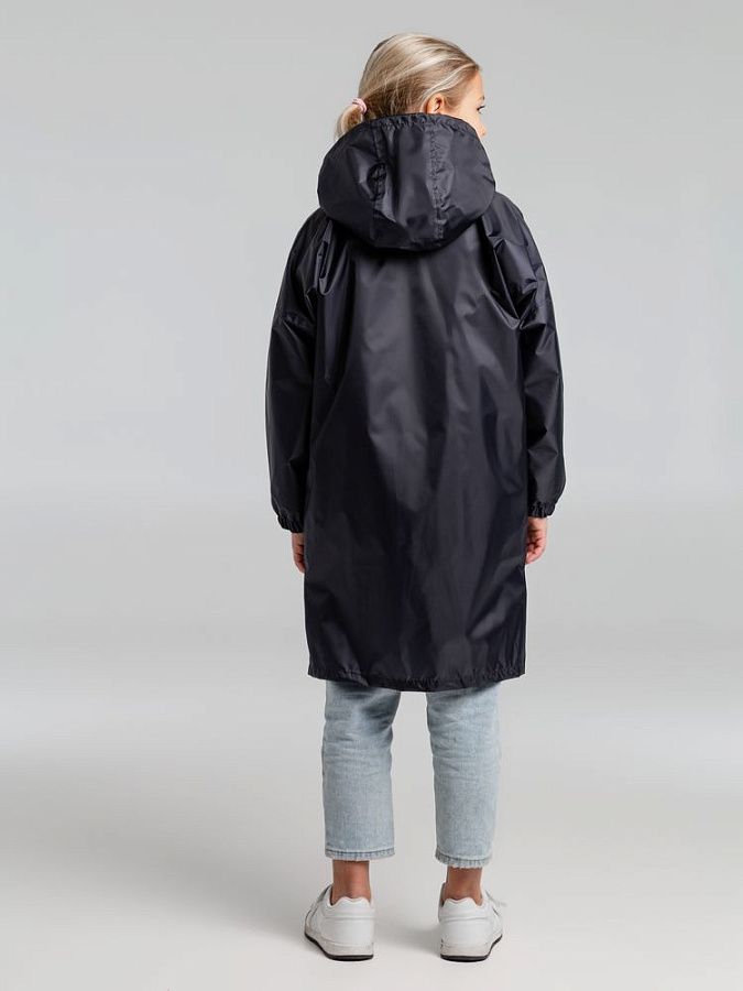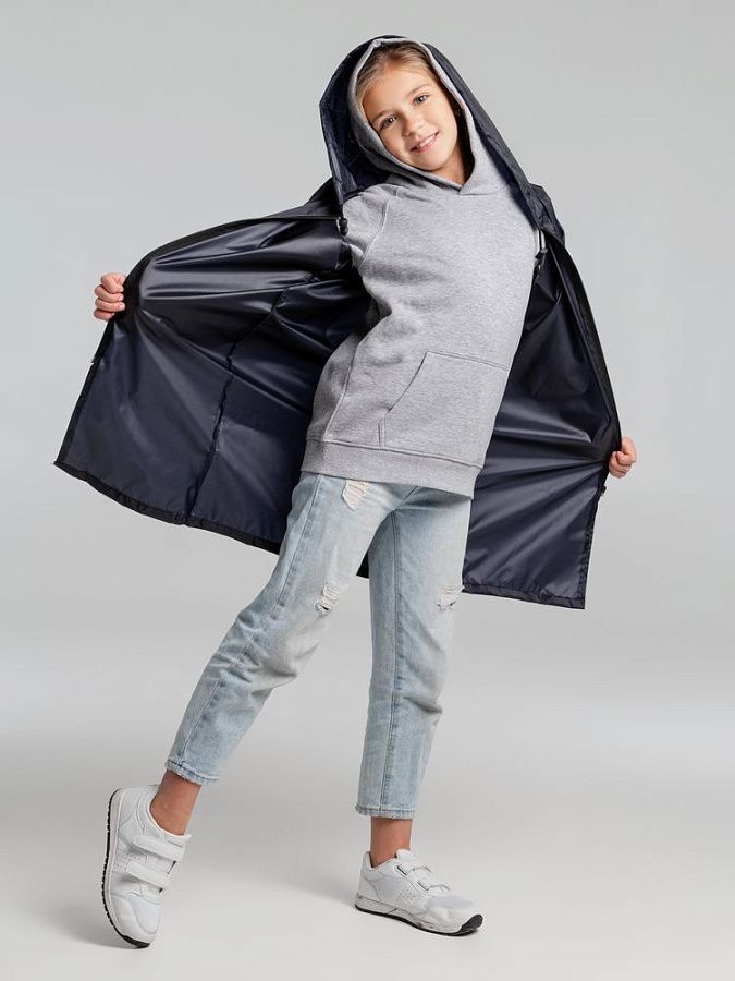 Детский дождевик на молнии из таффеты с влагозащитным покрытием. Складывается в мешочек — удобно брать с собой.