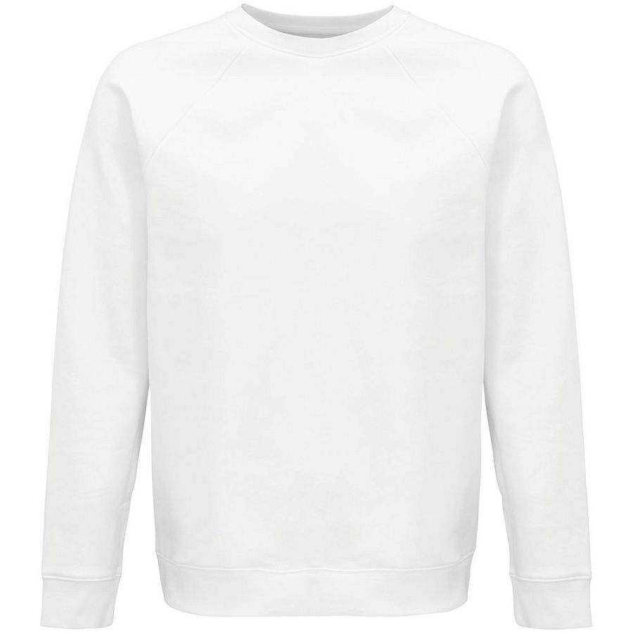Свитшот унисекс из органического хлопка. Лейбл производителя в боковом шве изнутри, в шве горловины — только бирка с размером, что позволяет удобно нанести свой логотип.