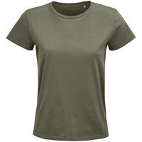 Женская бесшовная облегающая футболка из органического хлопка с круглым вырезом.