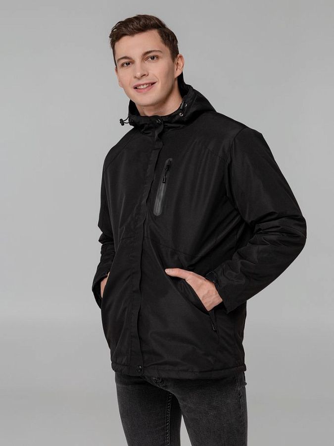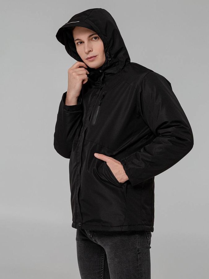 - Утепленная куртка на молнии с капюшоном, 3 внешними карманами на молнии и 1 внутренним карманом на молнии