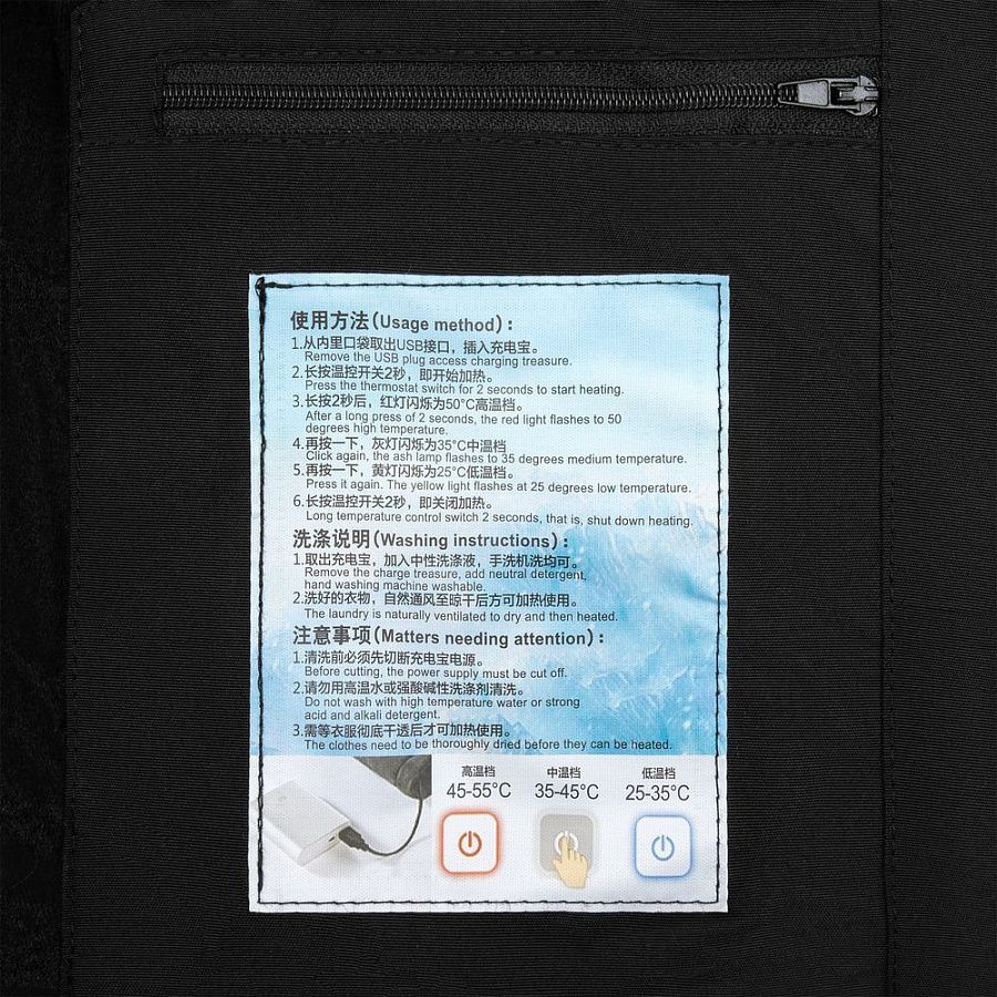 Утепленная куртка со встроенным нагревательным элементом из углеродного волокна в области спины и карманов. Работает от внешнего аккумулятора (в комплект не входит), подарит ощущение тепла и комфорта в любую погоду.