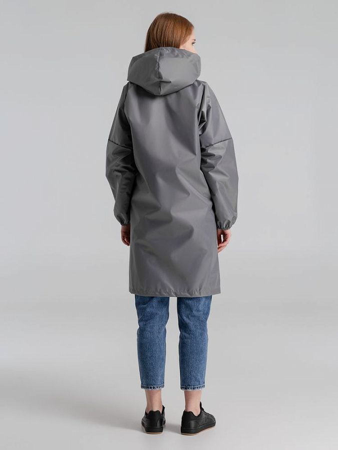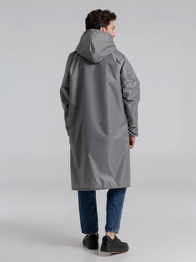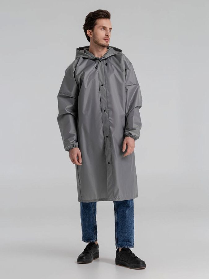 Плащ-дождевик из ткани оксфорд на кнопках с капюшоном. Световозвращающие элементы на рукавах и планке позволяют быть замеченным в темное время суток.