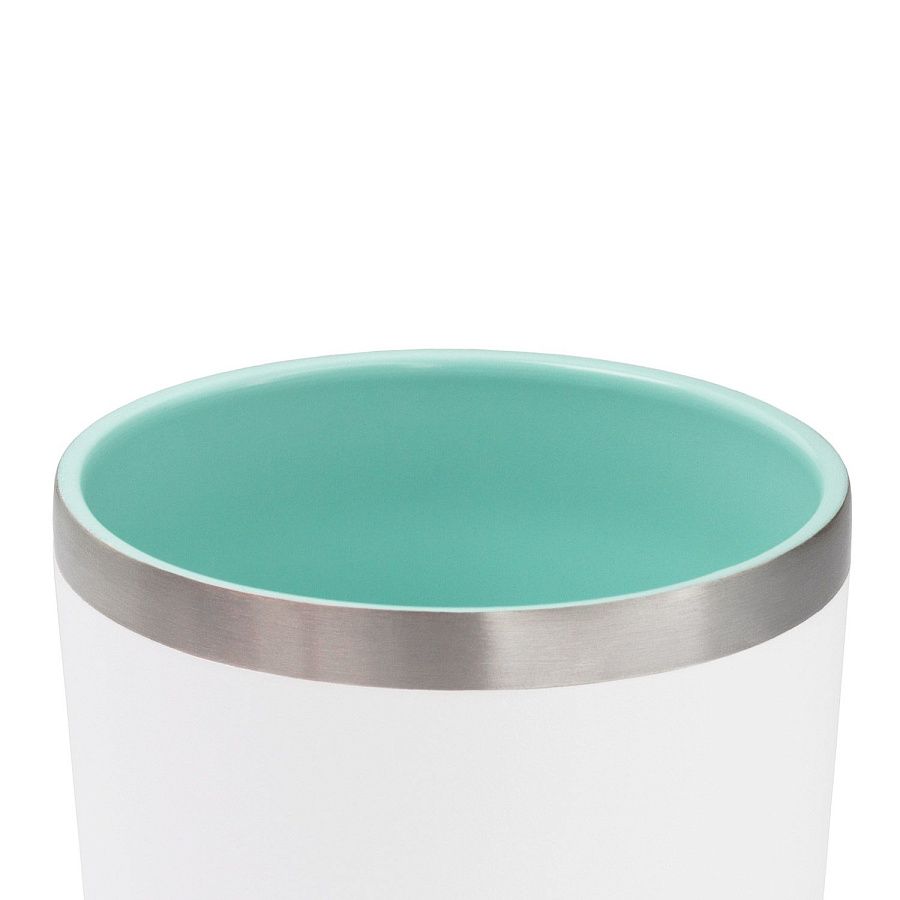 Яркий и необычный дизайн – белое порошковое напыление снаружи, и цветная керамическая эмаль внутри. Кружку удобно держать в руке благодаря ее эргономичной форме, напоминающей классический стакан.