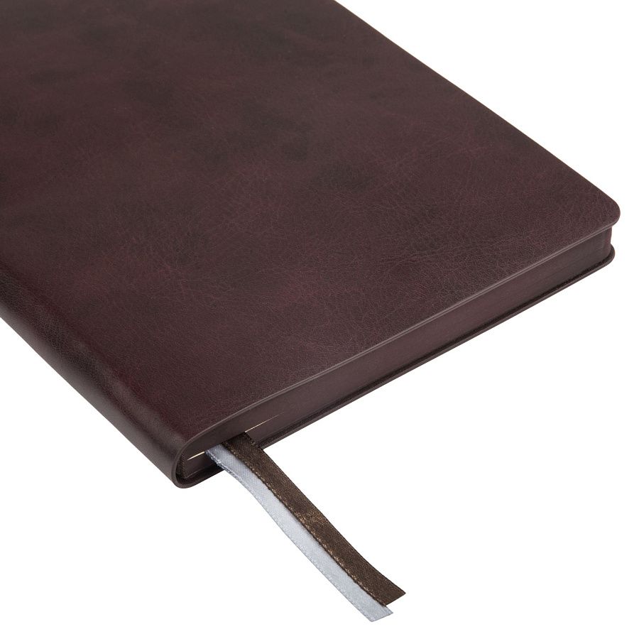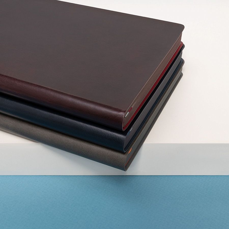 Яркий и одновременно лаконичный недатированный ежедневник Voyage воплощает современный дизайн и изысканный стиль. Гибкая обложка из искусственной кожи с полуглянцевым покрытием и скругленными уголками привлекает внимание своей необычной фактурой – едва заметной сеткой мелких морщинок и прожилок, напоминающих натуральную кожу. Спокойный, естественный цвет с неоднородным мраморным рисунком и плавными переходами от темного к светлому оттенку добавляет обложке глубину и изысканность.