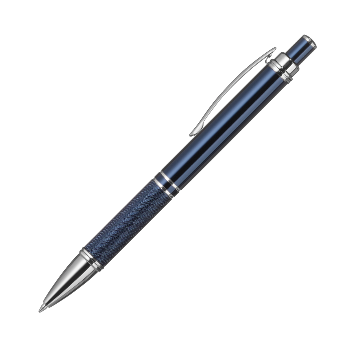 Элегантная шариковая ручка с ярким глянцевым корпусом и хромированными деталями.