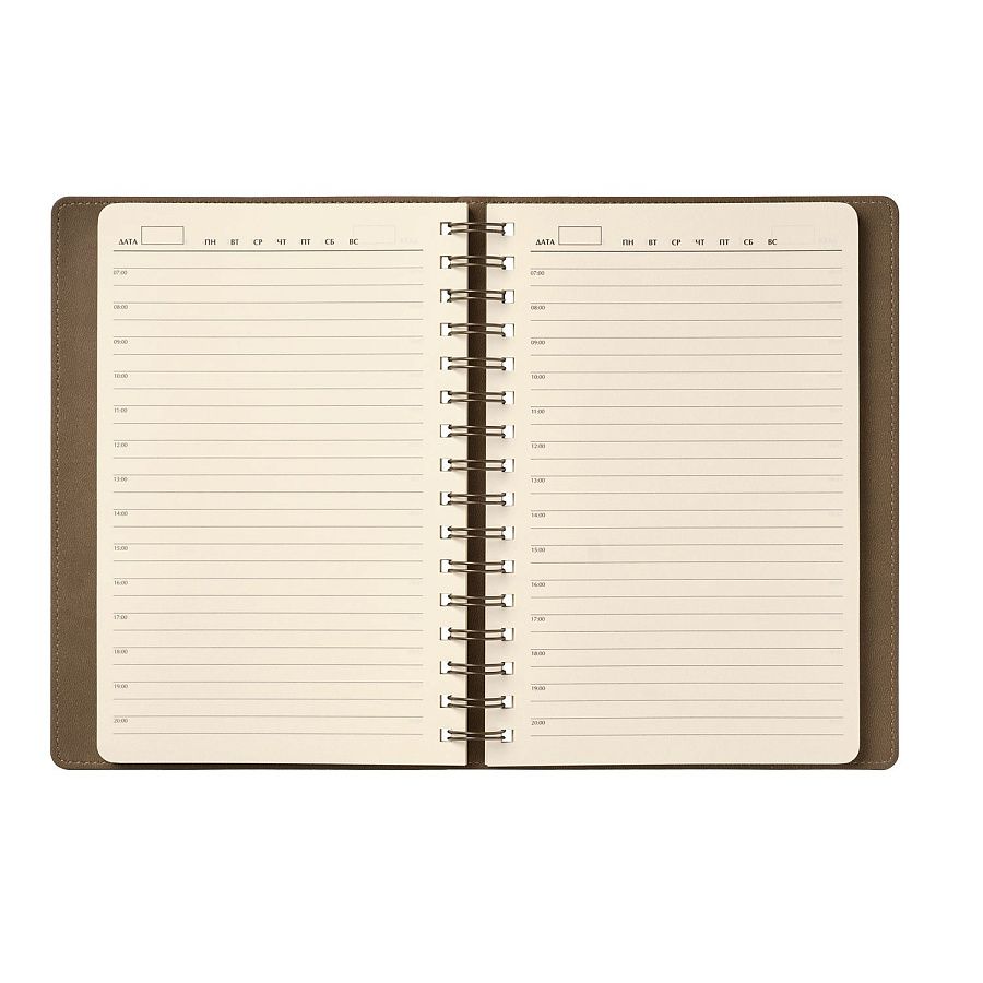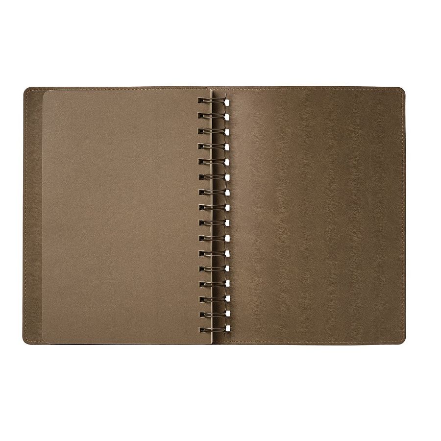 Внутренний блок с кремовыми страницами и срезом гармонично сочетается с нежным оттенком форзаца и нахзаца, повторяющим цвет внутреннего материала обложки. Надежная полускрытая пружина обеспечивает удобство использования и долговечность.