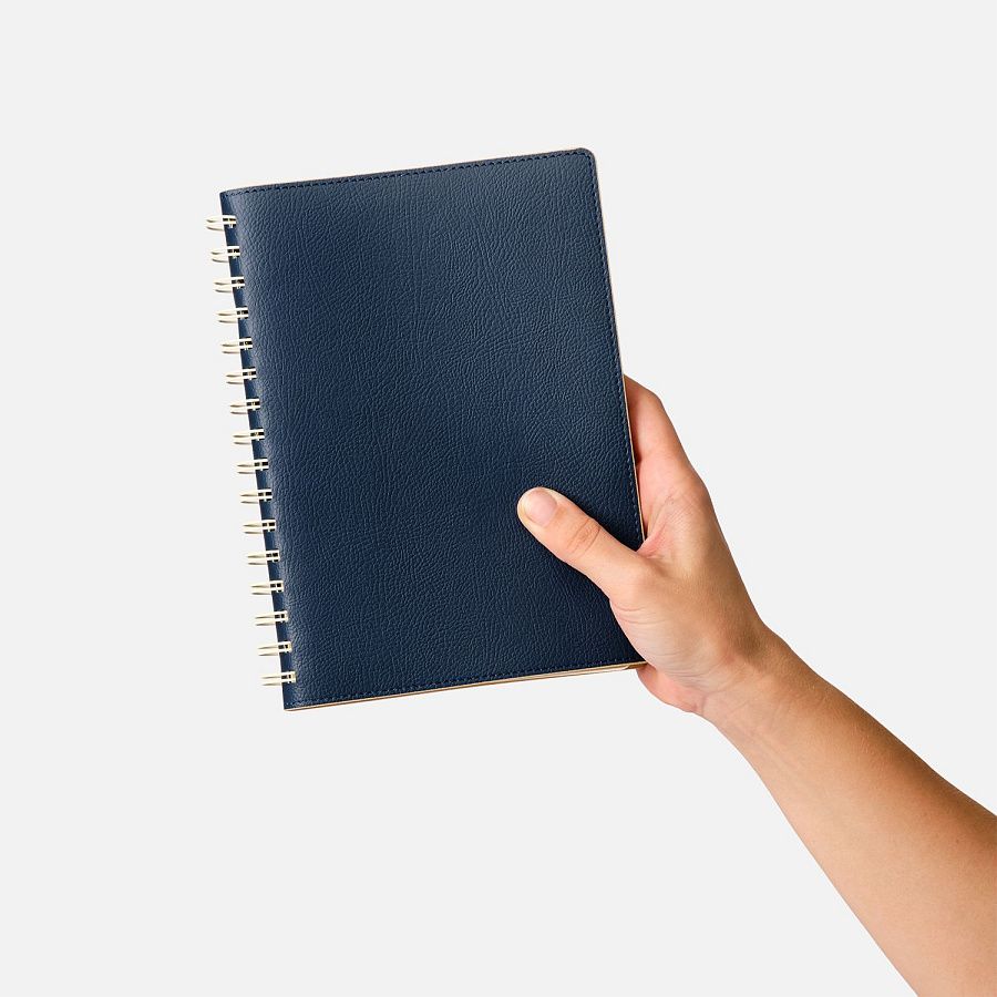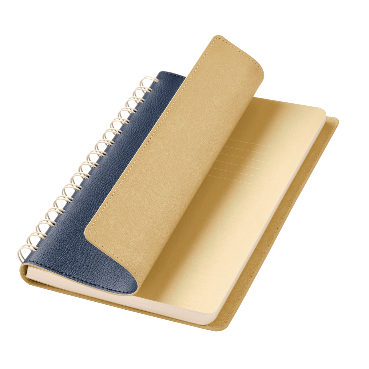 Внутренний блок с кремовыми страницами и срезом гармонично сочетается с нежным оттенком форзаца и нахзаца, повторяющим цвет внутреннего материала обложки. Надежная полускрытая пружина обеспечивает удобство использования и долговечность.