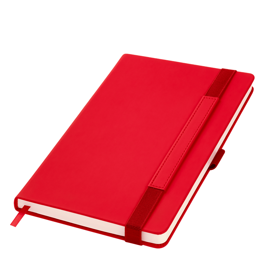 Вертикальная резинка-фиксатор с вставкой из ПУ-материала обложки и петелька под ручку, в цвет обложки
