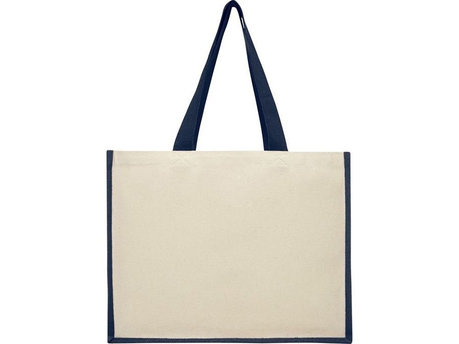 Модная сумка для покупок с боковыми панелями (вес 320 г/м²), подходящими для нанесения изображений, окантовкой из ламинированного джута и хлопковыми ручками.
