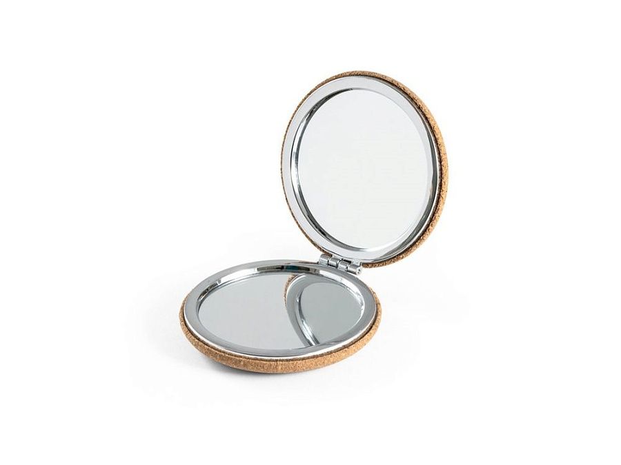 Двойное зеркало из пробки на магните. Поставляется в упаковке из натуральной бумаги. ø73 x 20 мм