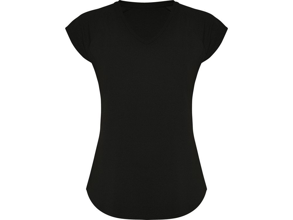 Спортивная женская футболка с коротким рукавом реглан. Вырез горловины V. Полотно из полиэстера на ощупь напоминающее хлопок. Приталенный силуэт.