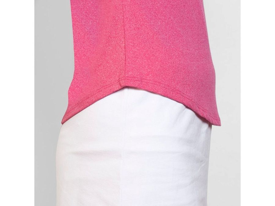 Спортивная женская футболка с коротким рукавом реглан. Вырез горловины V. Полотно из полиэстера на ощупь напоминающее хлопок. Приталенный силуэт.