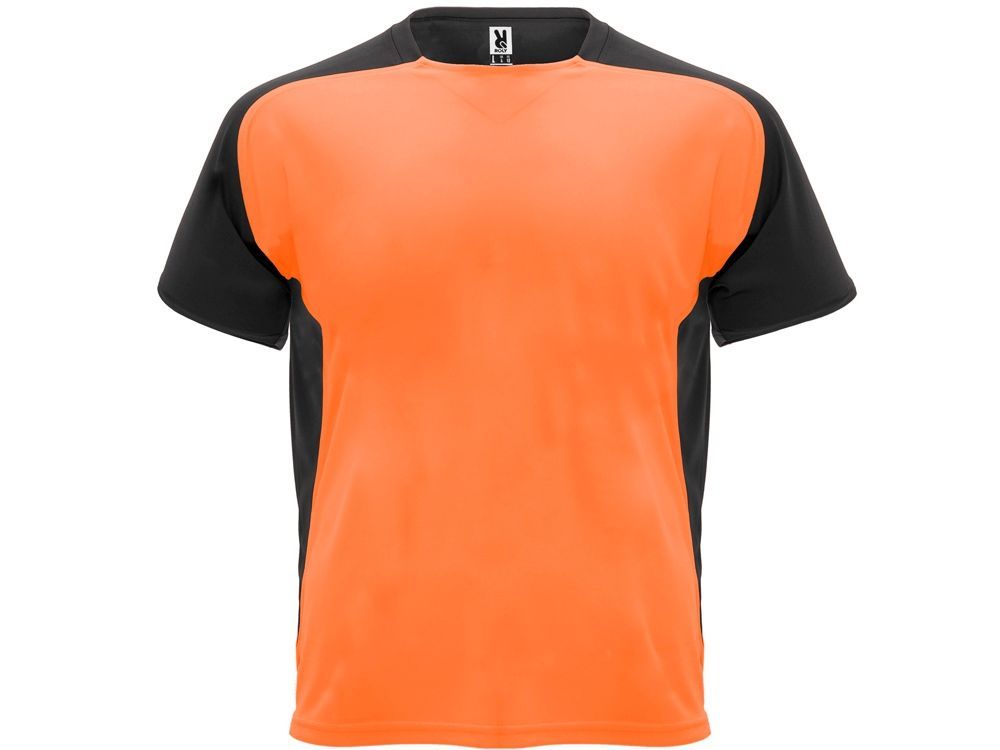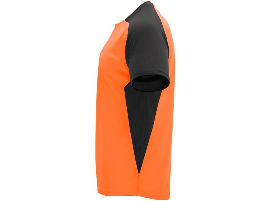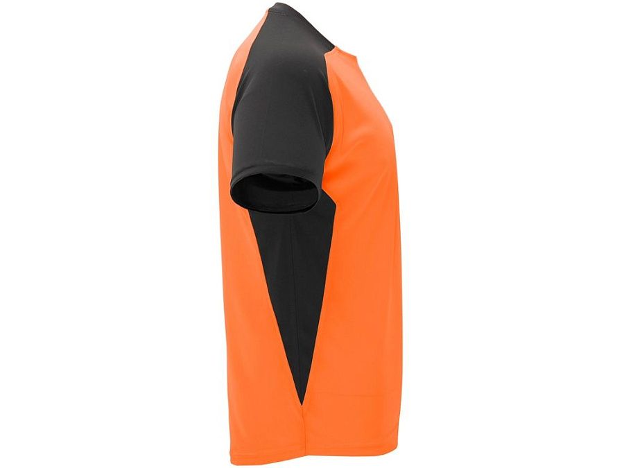 Спортивная футболка с коротким рукавом реглан. Круглый вырез горловины. Контрастные рукава и боковые вставки.
