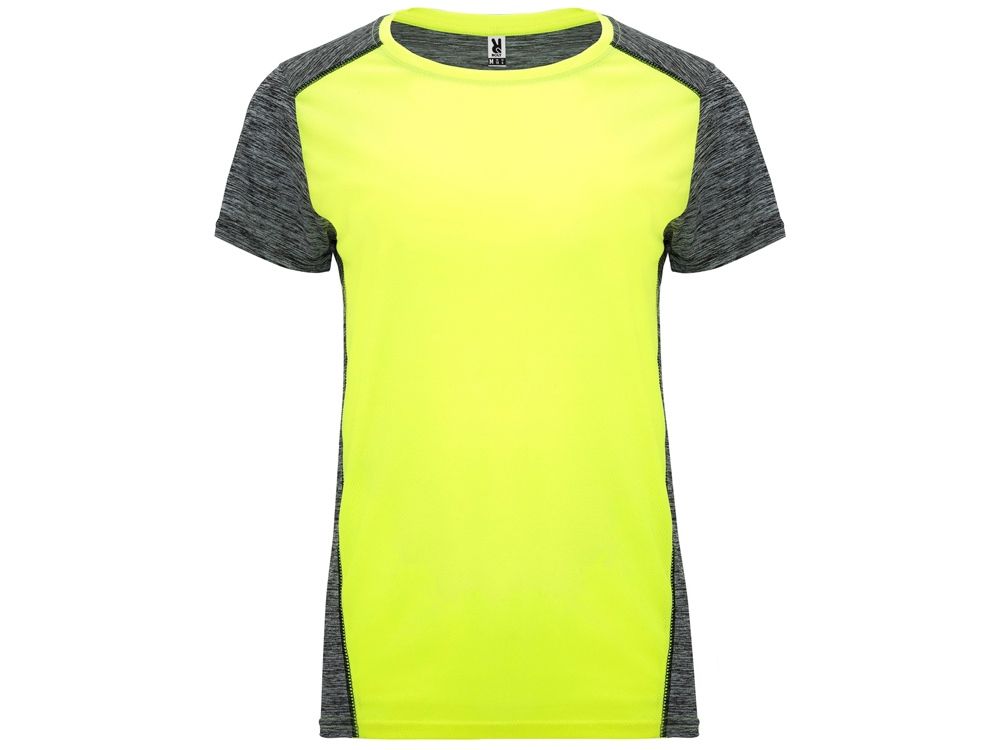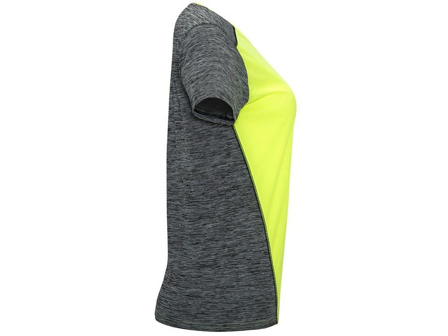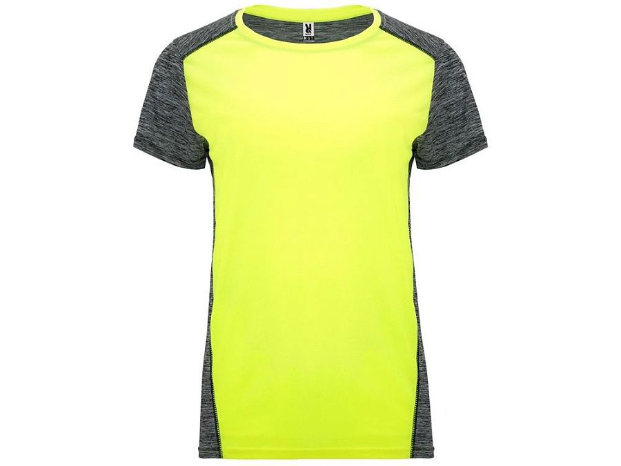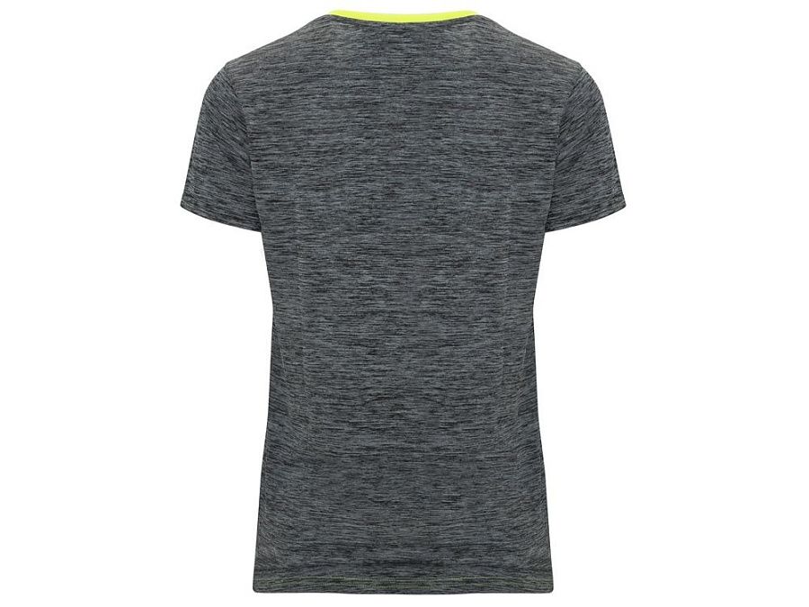 Футболка с коротким рукавом из технологического полотна. Круглый вырез горловины. Комбинация двух полиэстеровых полотен. Основное полотно на полочке со структурой, дополнительное полотно на спинке, рукавах и плечах с меланжевым эффектом. Задняя часть немного длиннее. Легко сохнущее дышащее полотно.