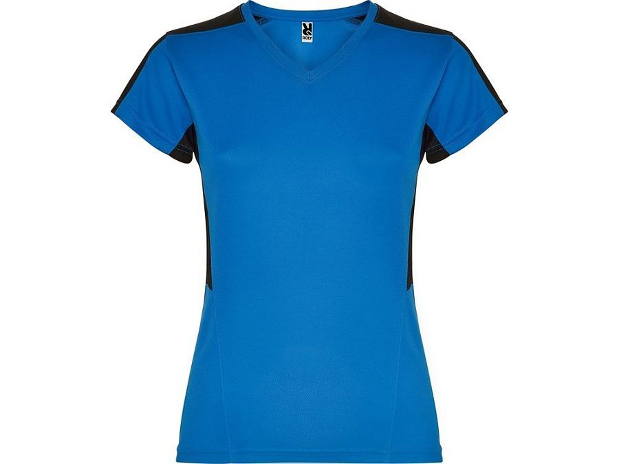 Женская футболка с коротким рукавом. V-образная горловина. Комбинация из 2 полотен контрастного цвета: структурное полотно на полочке и дышащая 3D сетка на плечах и боках.